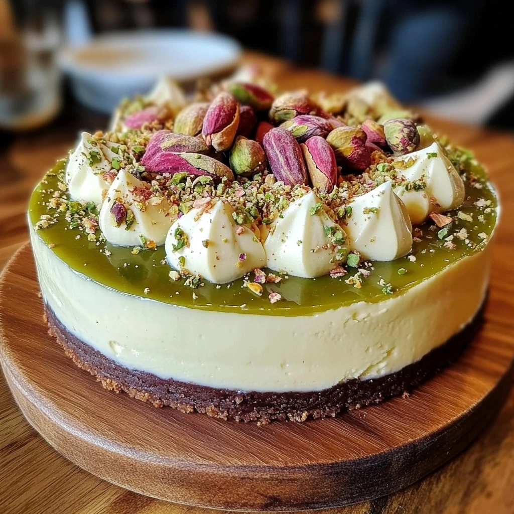 Heavenly Pistachio White Chocolate Cheesecake