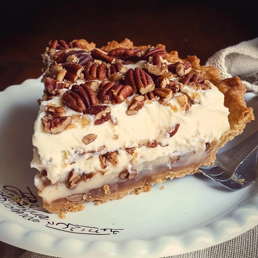 Serve your Pecan Cream Pie with a generous dollop of whipped cream on top. You can also add a sprinkle of chopped pecans for extra crunch!